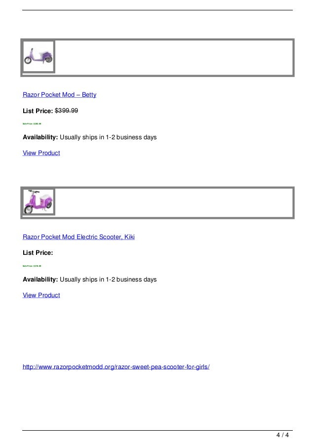 Check out Razor's cutest new electric ride! Check out Razor's cutest new electric ride! Jasmyne's Razor Sweet Pea Pocket Mod Scooter and Mikey's Razor MX350 Electric Dirt Bike - Duration: ... Return Doc